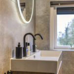 Overloop, drie grote slaapkamers, moderne badkamer met regendouche, toilet en wastafelmeubel.
